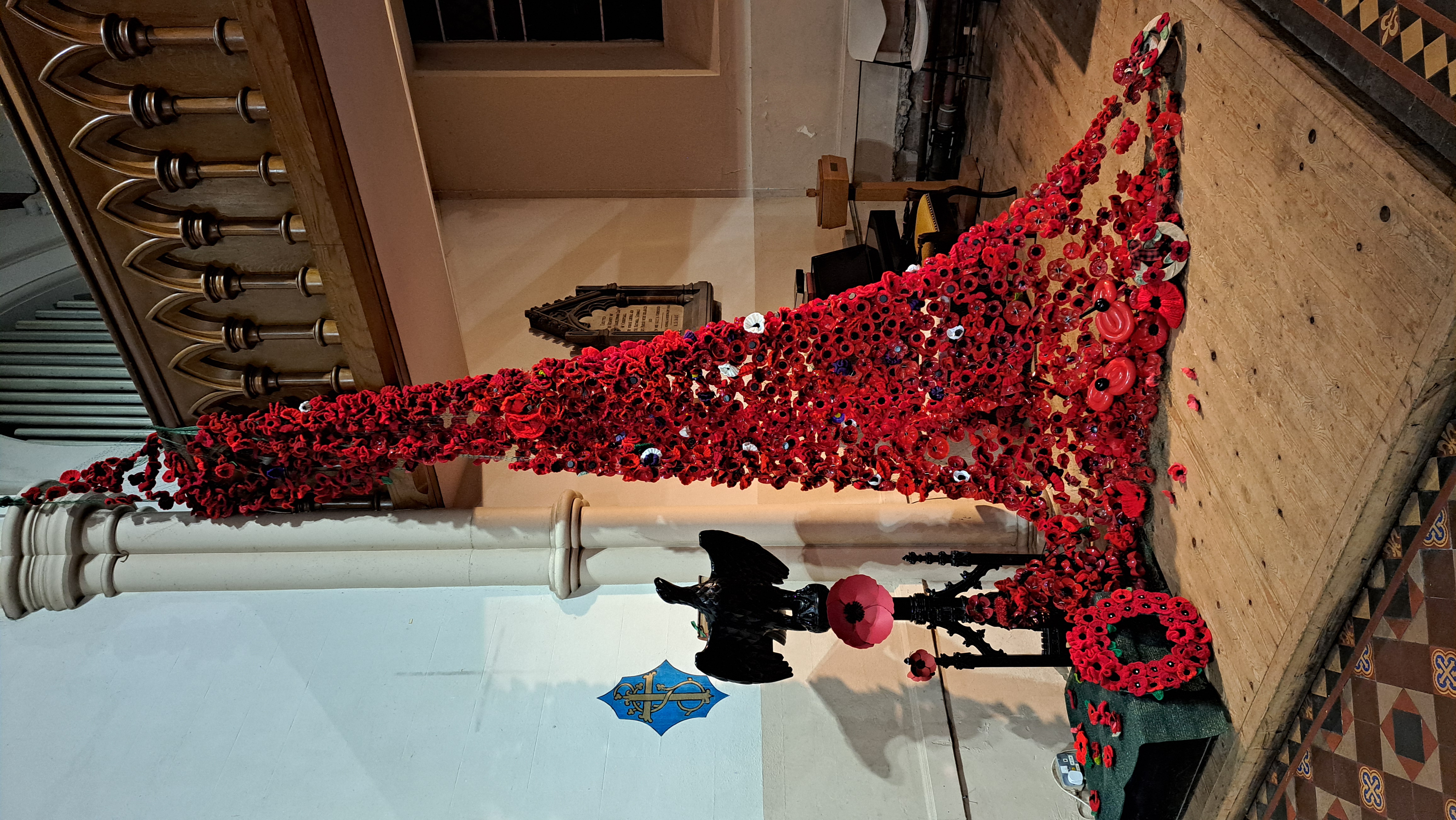 The cascade now hangs in the light at St Peter’s, flowing from the gallery to the floor like a river of remembrance. It is beautiful, but its beauty runs deeper than colour and shape. Each poppy is unique, yet each plays its part in the whole. It is a living picture of St Paul’s words: